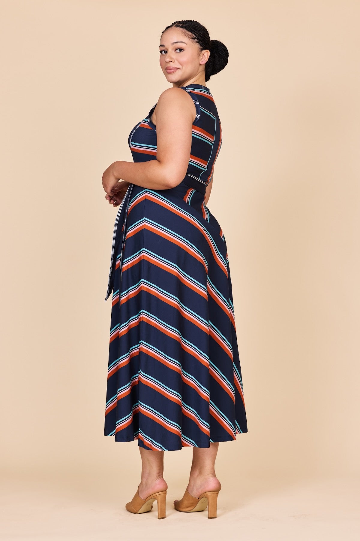 The Retro Stripe Roller Dress is pure vintage glamour. Crafted from a luxe mid-weight cotton jersey spandex it drapes beautifully, moves with you and feels impossibly soft against the skin.