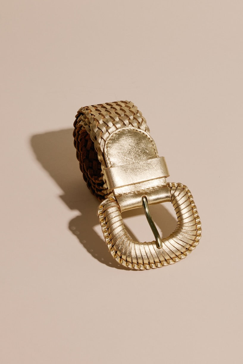 WEAVE ME THIS WAY Gold Leather Belt