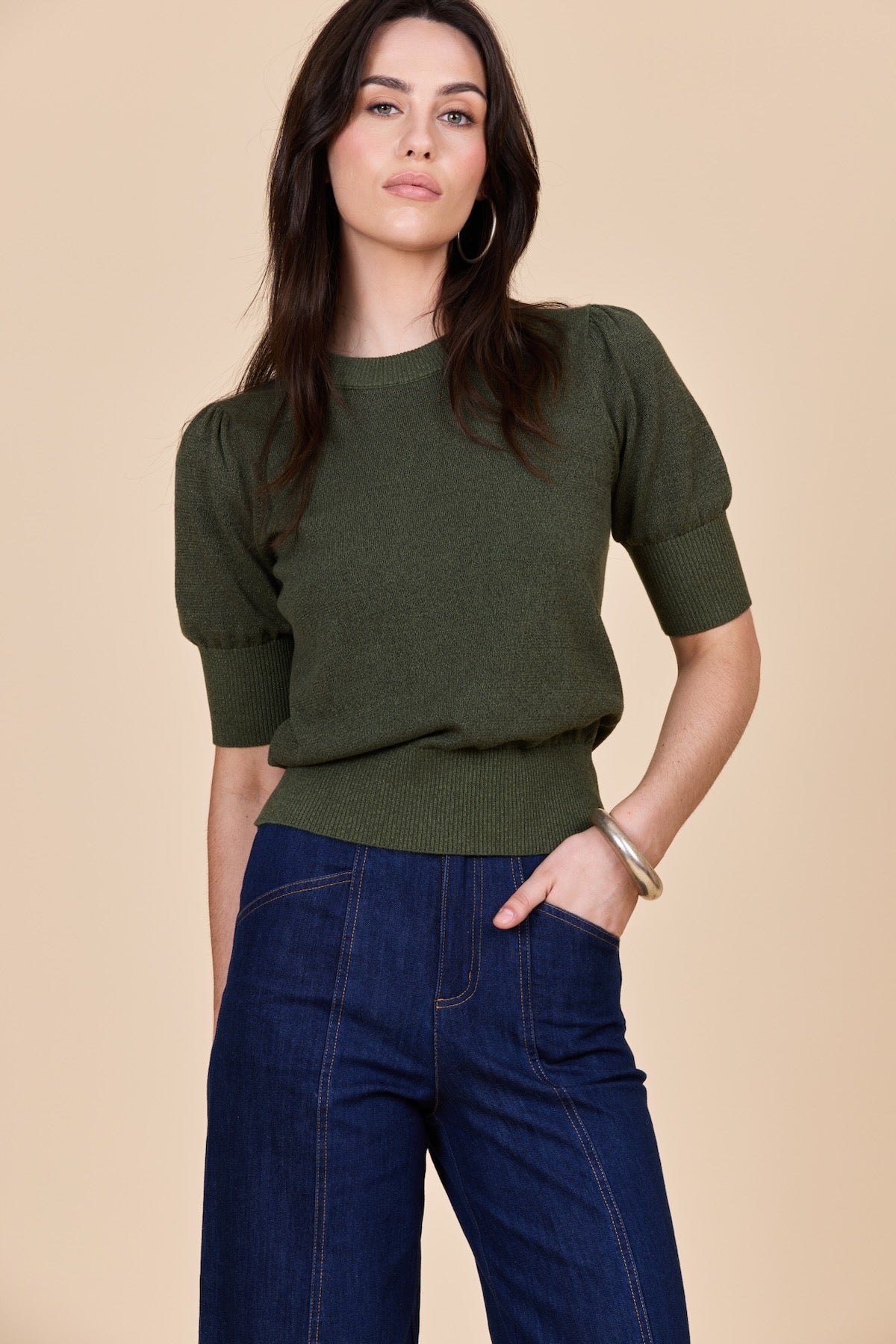 OLIVE Lurex Elbow Sleeve Knit Jumper