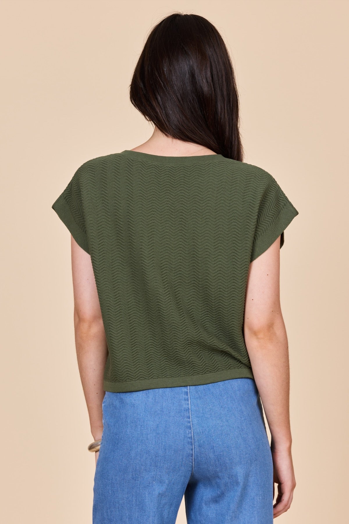 Our endlessly versatile Zig-Zag textured cotton knit top is designed for easy-yet-polished outfitting and layering. Made from a super soft cotton knit, it's all about comfort and wearability with a that extra little something-something.