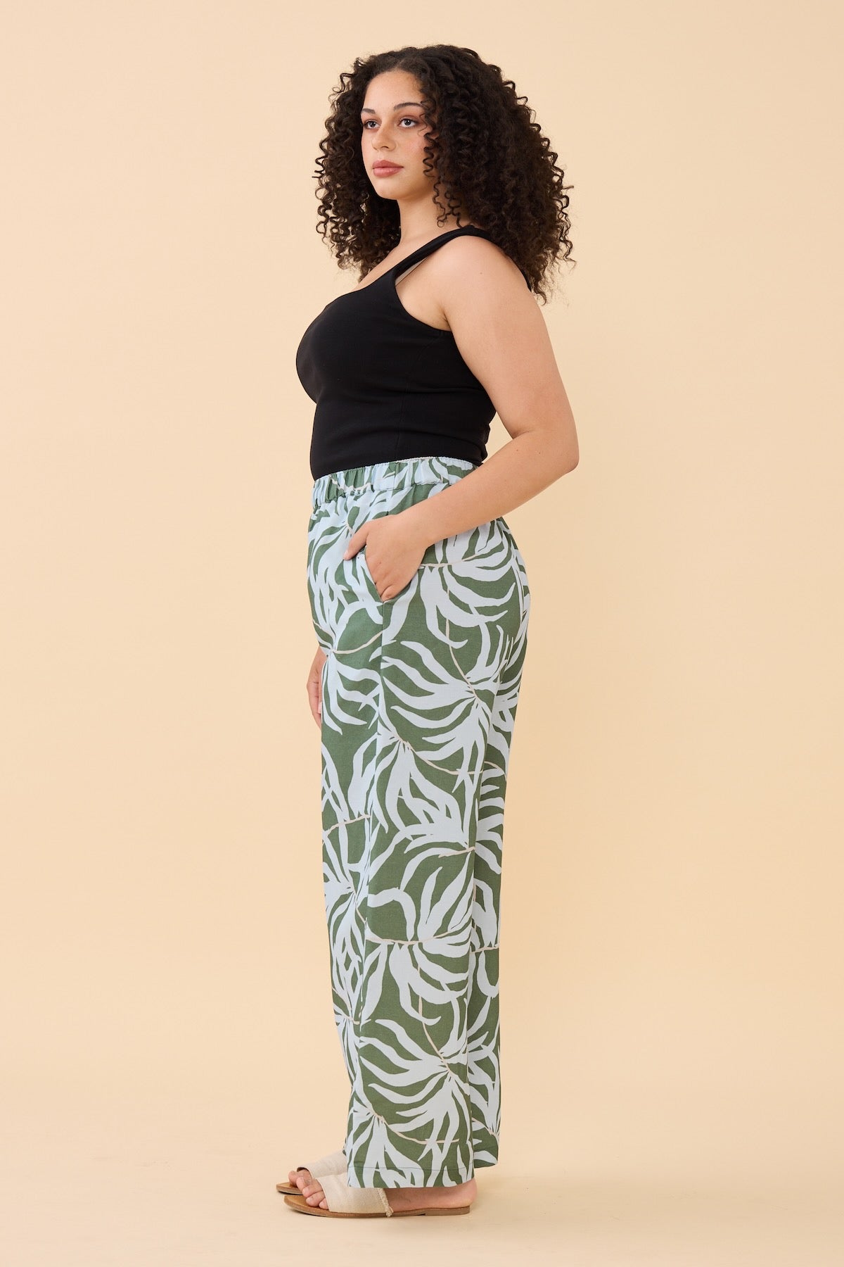 Pair with a simple tank or tee for laid-back chic, or go all-in with the matching Let’s Be Fronds Shirt for the ultimate resort set moment. From poolside cocktails to weekend wanderings - these pants have you covered.